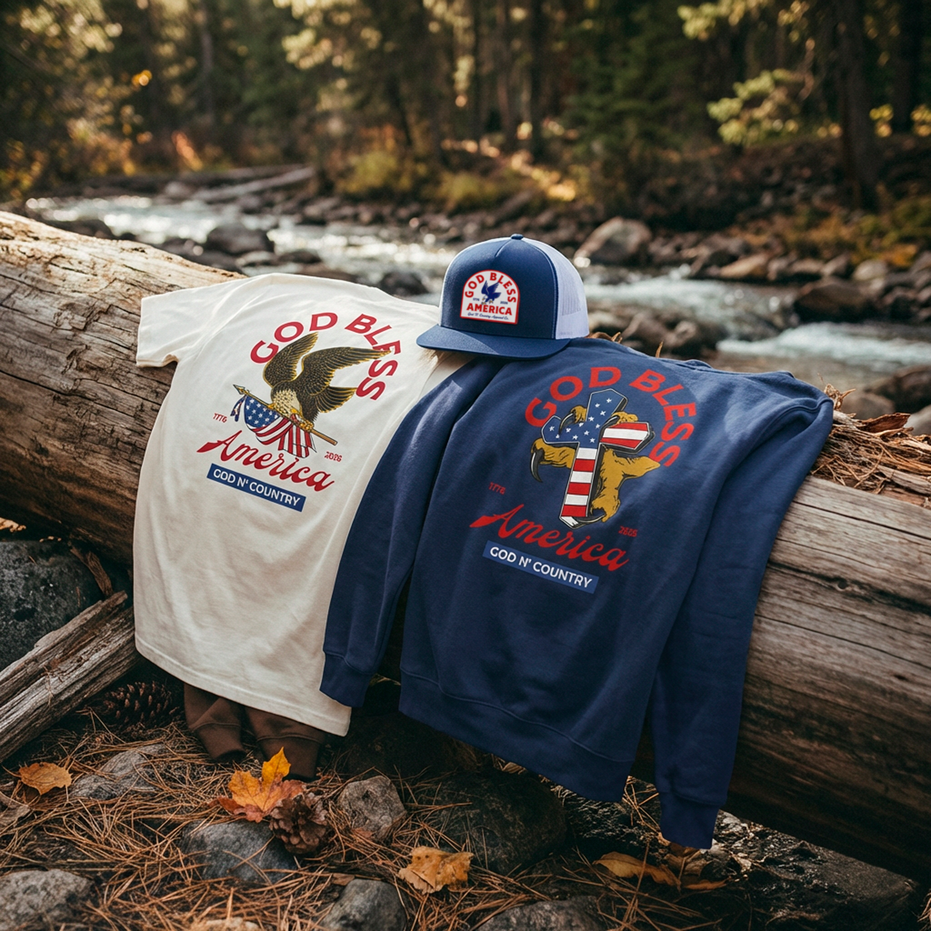 We believe in standing tall for what matters most: our faith, our family, and our country. Our apparel is designed to reflect the values that guide us — rooted in devotion and inspired by the great outdoors. Whether you’re working the land, enjoying time with family, or gathering in worship, our clothing stands as a symbol of pride and purpose.