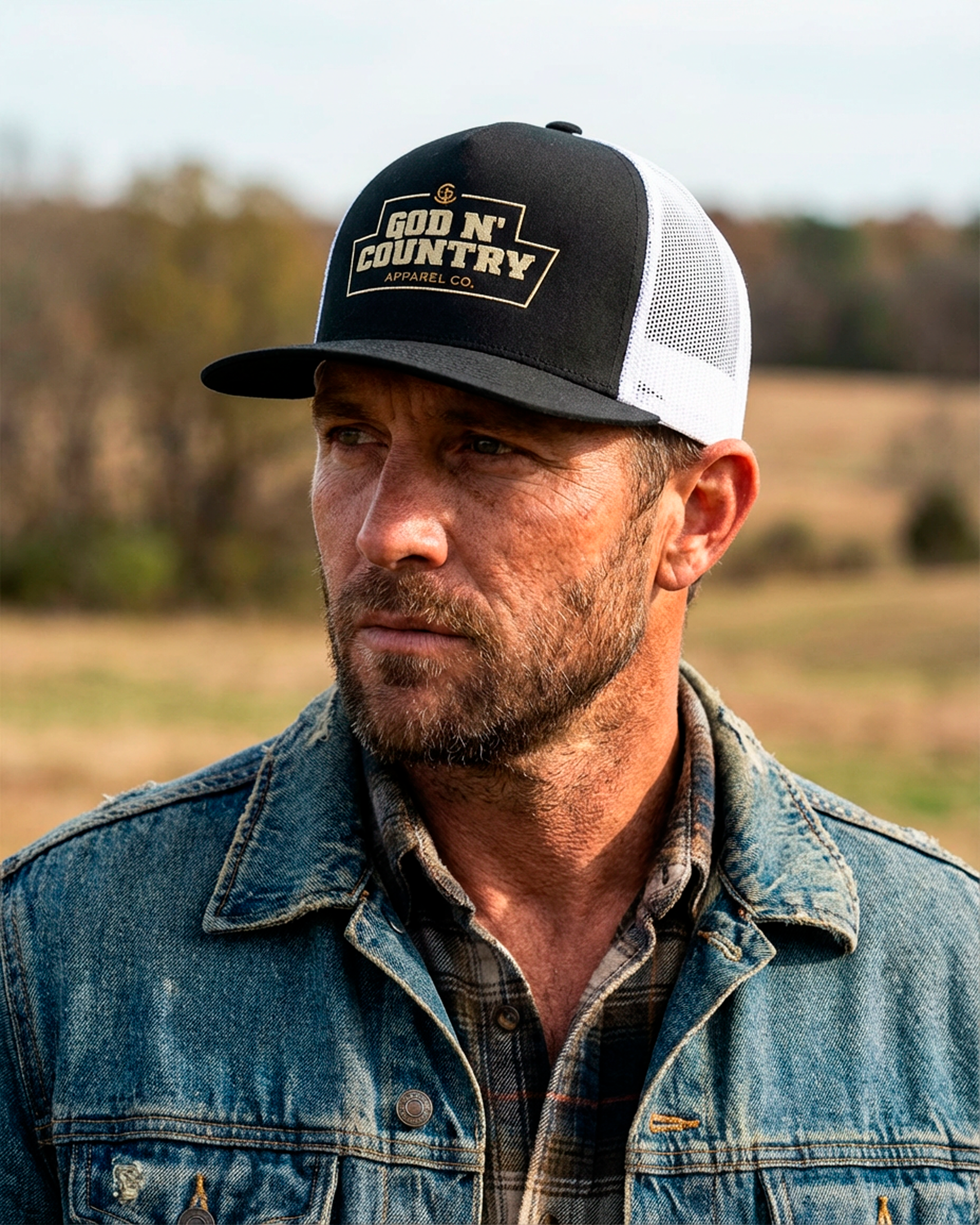 The God N Country White Mesh Five-Panel Trucker Cap is a timeless blend of style, comfort, and durability. Made from a 65% polyester / 35% cotton blend, this structured five-panel cap features a high-profile design with a flat visor, delivering a modern yet classic trucker look. The white mesh back ensures breathability and all-day comfort, making it ideal for outdoor wear. Designed with a snapback closure, this cap offers an adjustable, one-size-fits-most fit for versatility and convenience.