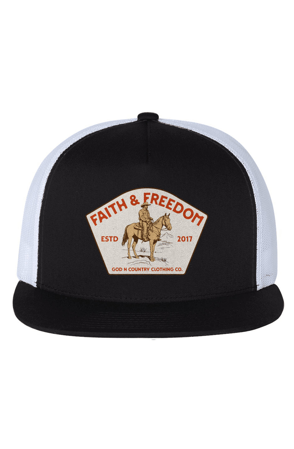 Showcase your patriotic pride with the God N Country Wrangler White Mesh Trucker Hat. Designed for comfort, durability, and style, this structured trucker hat features a bold Faith and Freedom Wrangler printed logo, making it the perfect accessory for outdoor adventures, casual wear, or daily outings. Its breathable mesh back and snapback closure ensure a comfortable fit for all-day wear.